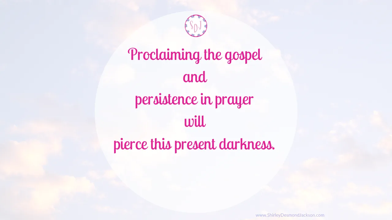 Dear Lord, our souls are troubled whenever evil darkens our world. Help us to remember the battle is a spiritual one. May we putt on the full armor you give us. As we proclaim your gospel and pray in all circumstances we will shine your light and pierce this darkness. We pray this in Your name. Amen.
